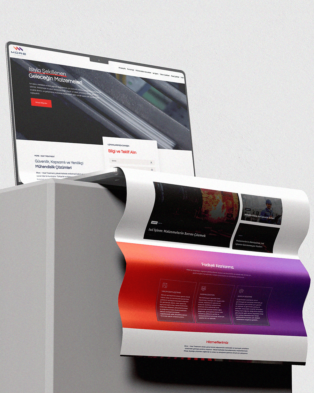 MonoPenta C.B. olarak; markanın konumlandırmasından sunum diline, görsel kimliğinden iletişim stratejisine kadar tüm yapıyı yeniden kurgulayarak More Isıl İşlem için net, güçlü ve sektörüne doğrudan temas eden bir marka dili oluşturduk.